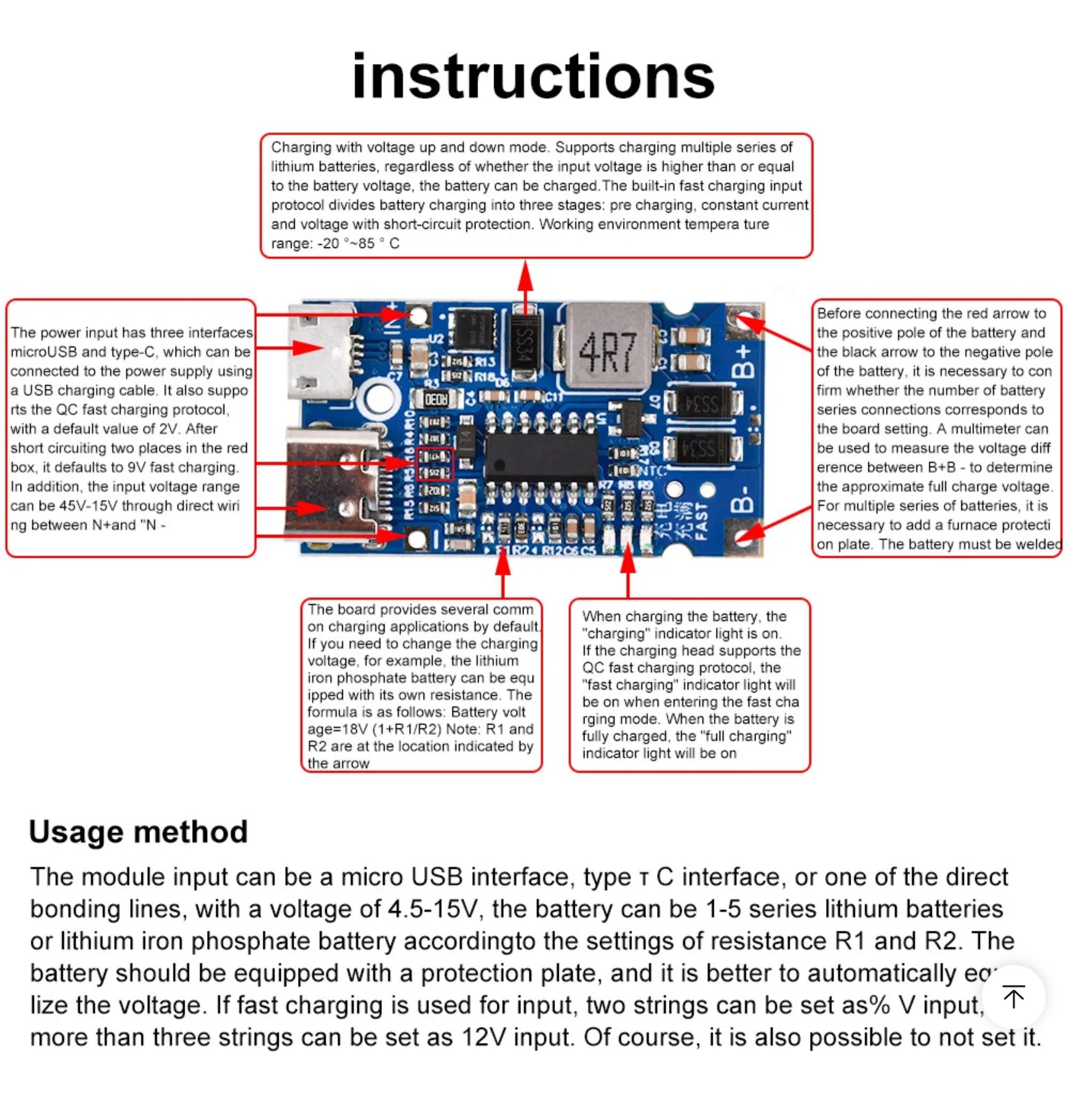 Battery, Charger, USB, typeC, 4.5~15V, 2S, 3.7Vx2, 18W